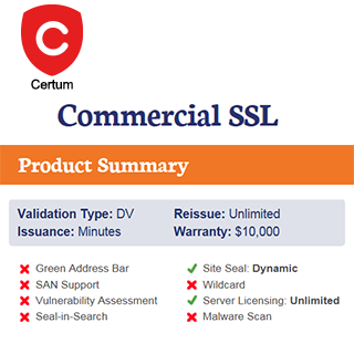 Poland’s most experienced and renowned Certificate Authority offers an extremely affordable line of 256-bit level SSL certificates created for quick issuance and low cost. For less than $15 a year and under 15 minutes, you can secure databases, portals, blogs, mail servers, and more. Because the Certum Commercial SSL is a domain validated (DV) SSL certificate, you get a speedy & inexpensive certificate behind their trusted, big-name brand. It’s a strong, basic certificate for a stripped-down price.