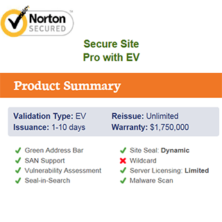 If you truly want to invest in the trust, credibility, and assurance of your website, there is no better option than the Symantec Secure Site Pro w/ EV (SGC). Our most premium certificate, the Symantec Secure Site Pro w/ EV (SGC) is the perfect storm of trust and security. As an Extended Validation (EV) certificate, your website will gain the benefit of the green address bar – the most recognized symbol of trust on the internet. Additionally, this Symantec certificate will display the Norton™ Secure Seal on your site as well, that famous checkmark that has become an internet staple among the most popular and frequently visited ecommerce sites. Whether you’re a small business looking to leverage the same tools used by the biggest companies in the world or a large ecommerce site that needs to renew this first-rate certificate at an unbeatable rate, you’ve come to the right place.
